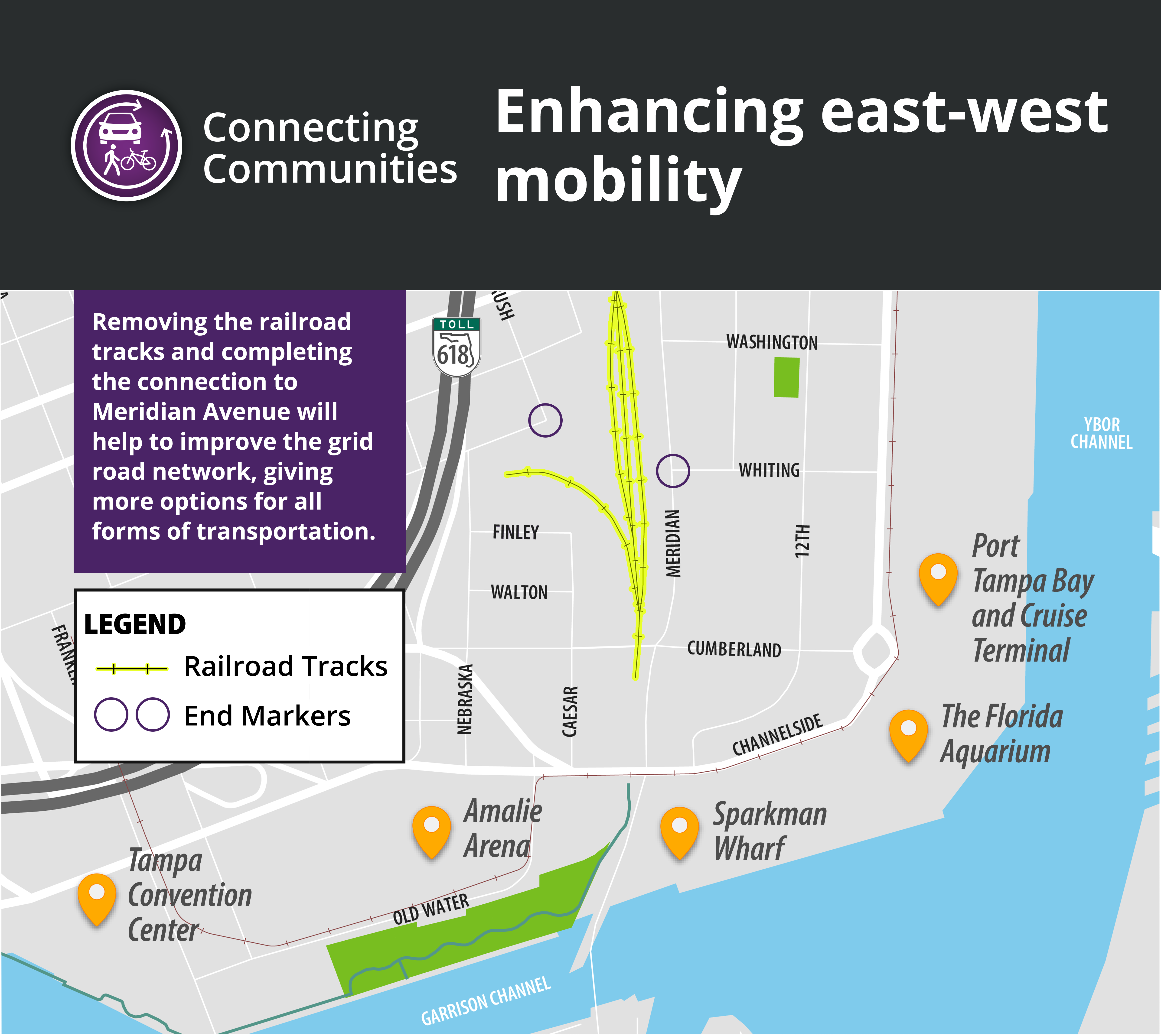 When THEA reconstructed Meridian Avenue, we made a commitment to the community that once the Ardent Mills flour mill was no longer located in downtown Tampa, we would remove the railroad tracks and help to restore the street network, connecting the center portion of downtown Tampa to the east. Now that the flour mill has moved, we are following through on that commitment. We are excited about how downtown is changing and growing, and we want to be part of the solution that makes getting around safer and easier.